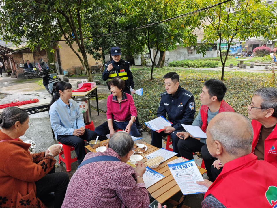 没有主席台,没有讲话稿。在小区的空地上,几条板凳一围,白龙派出所民警和社区干部就成了居民的“自家人”。针对老年人容易遭遇的电信诈骗、保健品诈骗,民警结合真实案例,用通俗易懂的话语拆解骗局套路,提醒大家“不听、不信、不转账”。