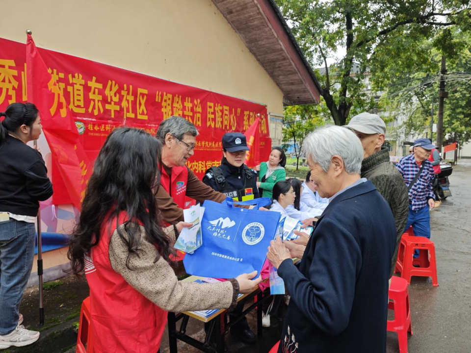 这是秀峰公安分局白龙派出所与东华社区共同开展的“银龄共治 民族同心”系列志愿服务活动的生动一幕。东华社区是一个多民族聚居的大家庭,现有壮、汉、瑶、苗、侗、回、满、土家等8个民族。社区老年人口占比70%,其中60岁以上老人有近1600人,他们既是服务的重点对象,也是参与社区治理的重要力量。