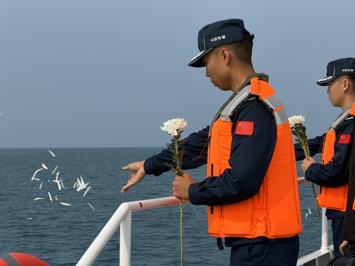 清明节前夕,广西防城港海警局为谯禾林举行海上纪念仪式。新华每日电讯记者 赵欢 摄