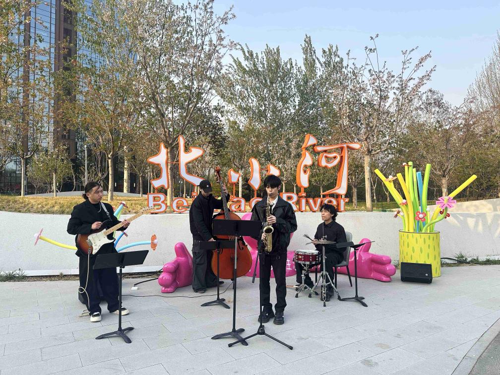 更妙的是,这条“樱花河”还将生态与生活无缝衔接。沿河两岸,水岸生活市集热闹非凡:爵士乐、魔术表演、戏剧演出轮番登场,游客可以品尝樱花特调咖啡、购买特色文创好物。樱花主题接驳巴士载着人们穿梭于公园与商圈之间,让赏花、消费、休闲浑然一体。