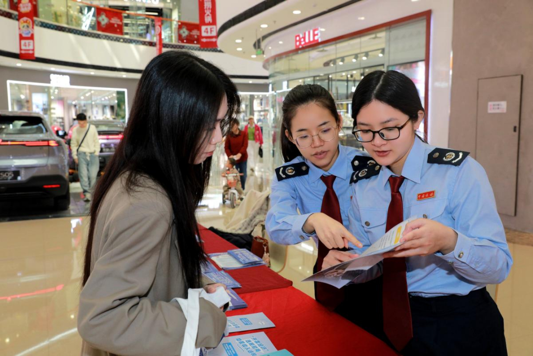 活动现场,位于商场中庭的“税宣驿站”成为一道亮眼的“蓝色风景线”。“您看,您的小孩去年上高中,在个税APP上可以这样填报专项附加扣除……”税务工作人员化身“政策宣讲员”,用通俗易懂的语言向过往市民讲解与生活息息相关的税费政策,帮助纳税人一步步算清“红利账”,让税费优惠真正“看得懂、算得清、用得上”。