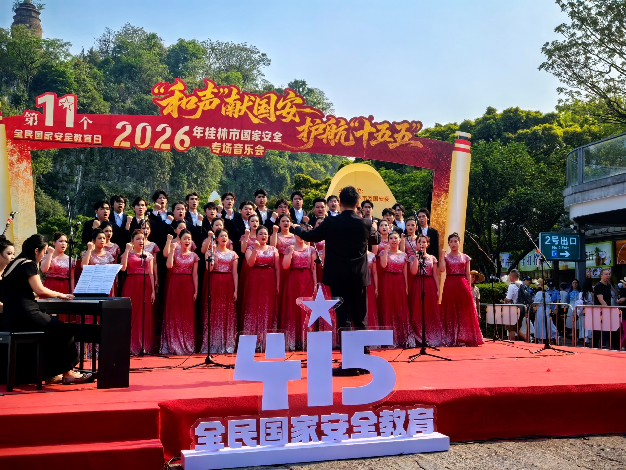 近日,在第11个全民国家安全教育日即将到来之际,2026年桂林市国家安全专场音乐会在桂林城徽象山景区精彩上演。