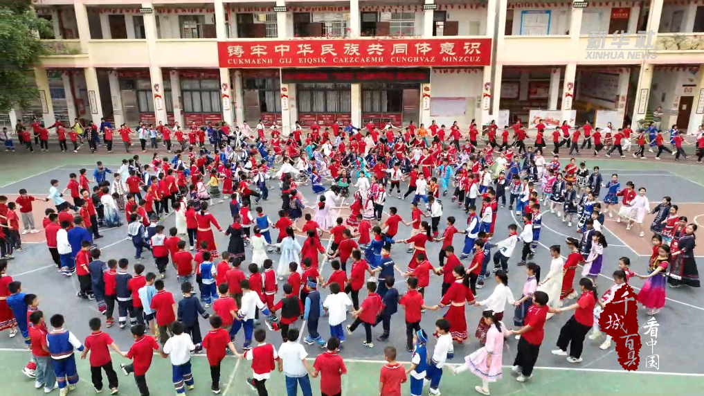 在蒙公镇中心小学,全校近千名师生齐聚一堂,手拉手跳起同心舞,用最简单真挚的方式,传递民族团结的深厚情谊。