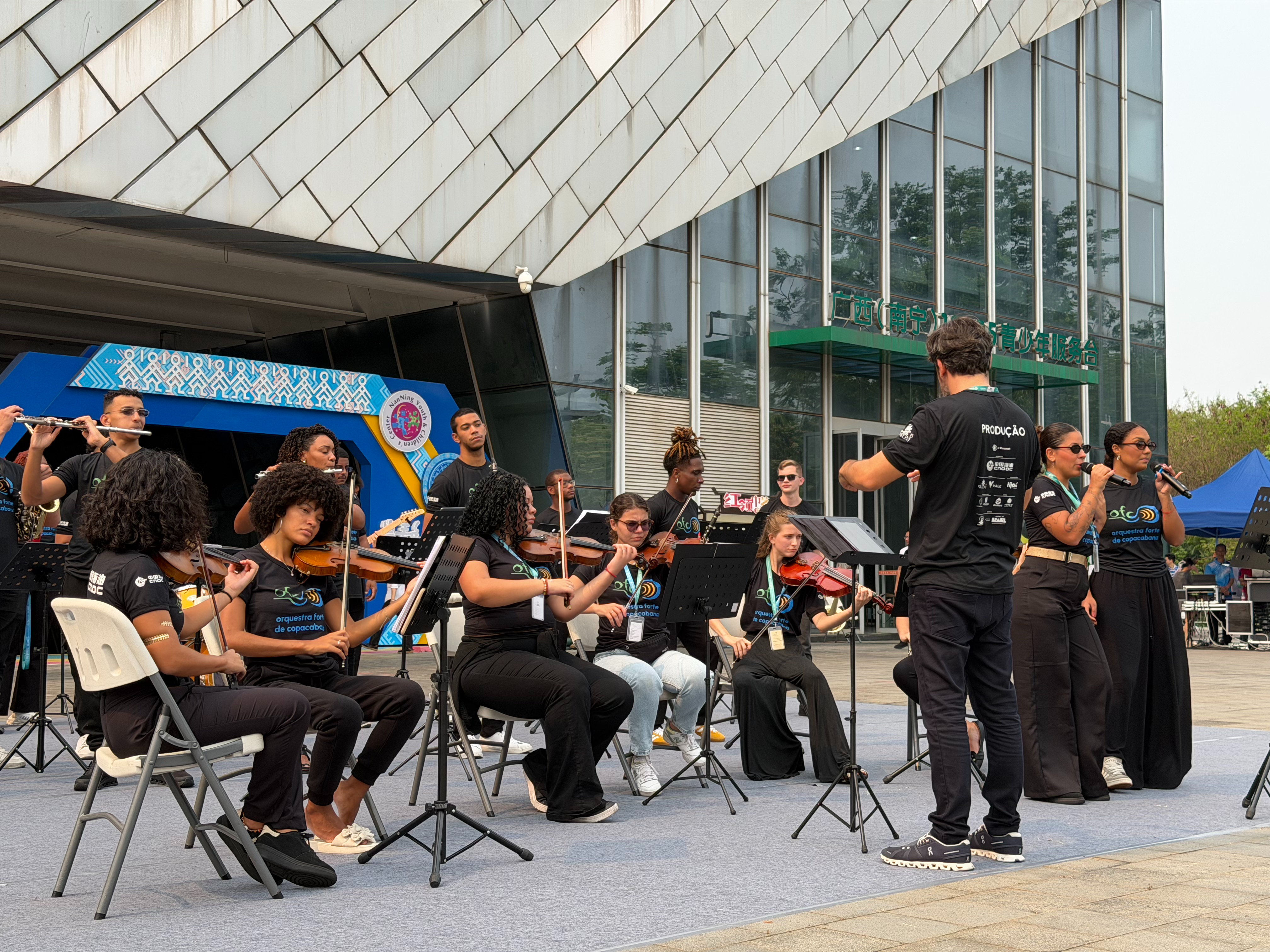 4月16日,参加交流活动的巴西科帕卡巴纳要塞乐团在广西壮族自治区南宁市青少年活动中心演出。新华社记者 赵欢 摄