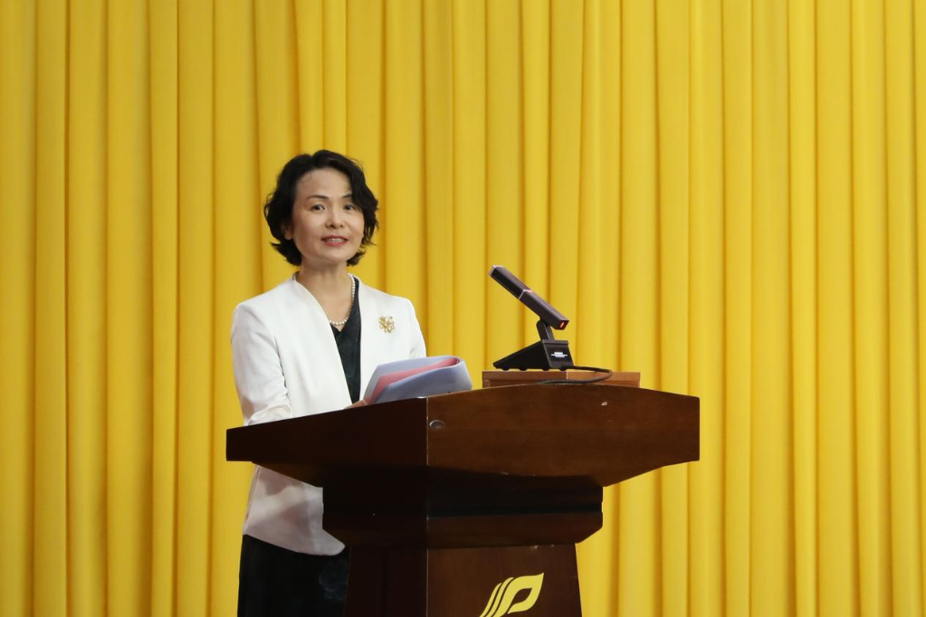 广西中医药大学图书馆馆长李欢澄介绍读书活动情况。