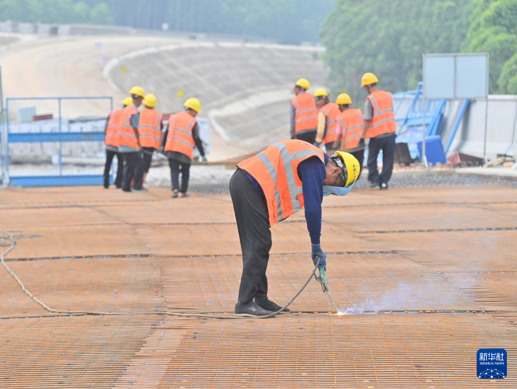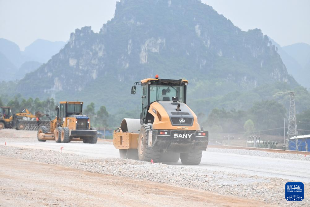 暮春时节,在广西柳覃高速公路建设工地,中铁二十局的建设者紧抓有利天气条件,加快推进工程建设。