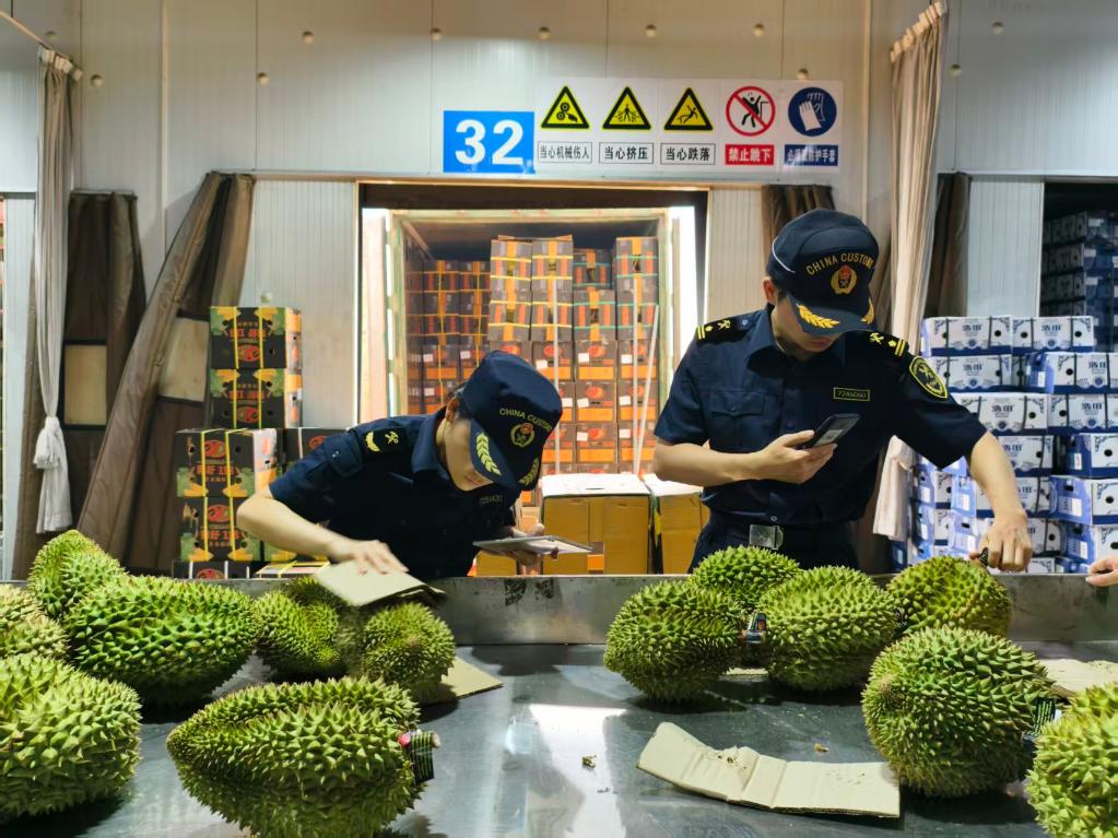 “当前正值榴莲上市季节,国内市场需求旺盛。”广西南向跨境运输有限公司总经理魏国振一边接打电话,一边协调运输计划。近期公司每天有20多个集装箱泰国榴莲经友谊关口岸入境,车辆最快3小时即可完成全部手续,并发往广东、浙江、江苏等地。