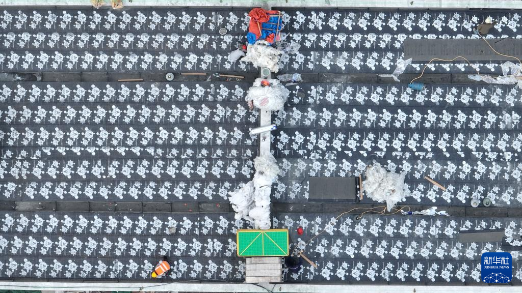 中铁十一局的施工队在岑溪东站开展封顶作业(3月27日摄,无人机照片)。