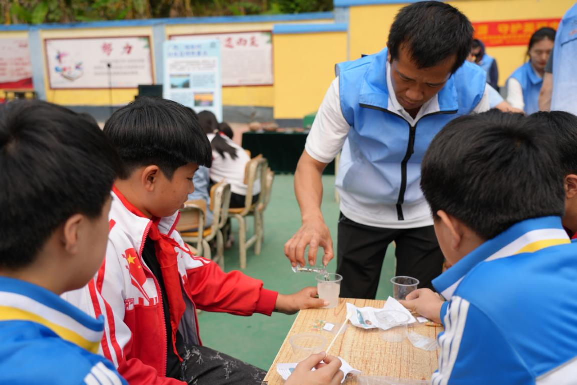 科普人员带领边境学生开展趣味地质实验。王亚 摄