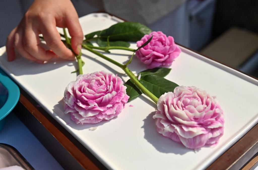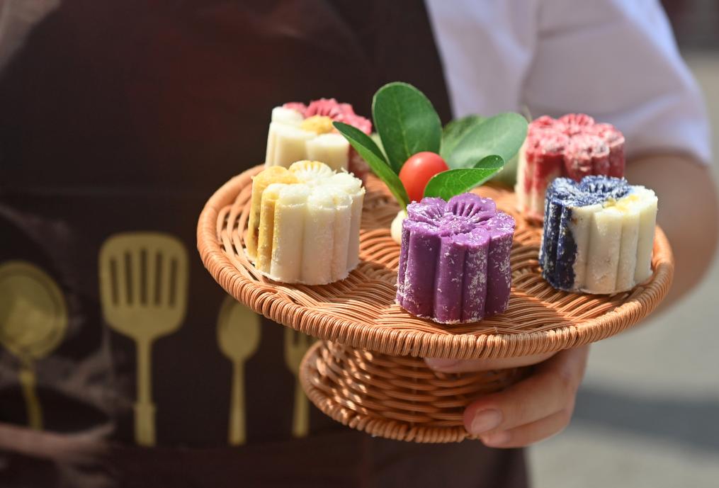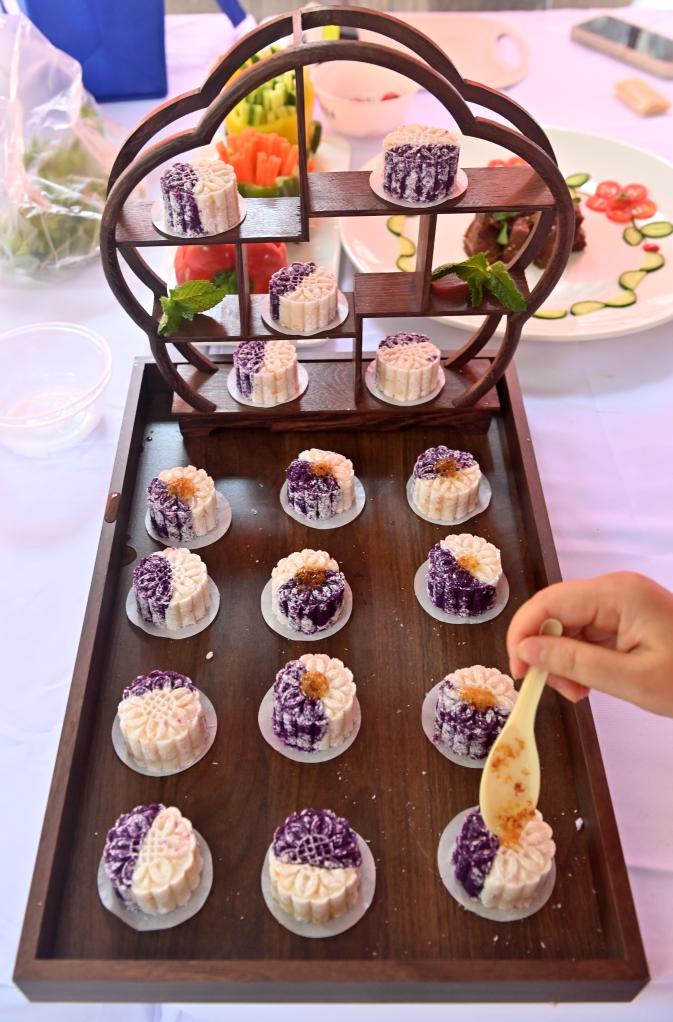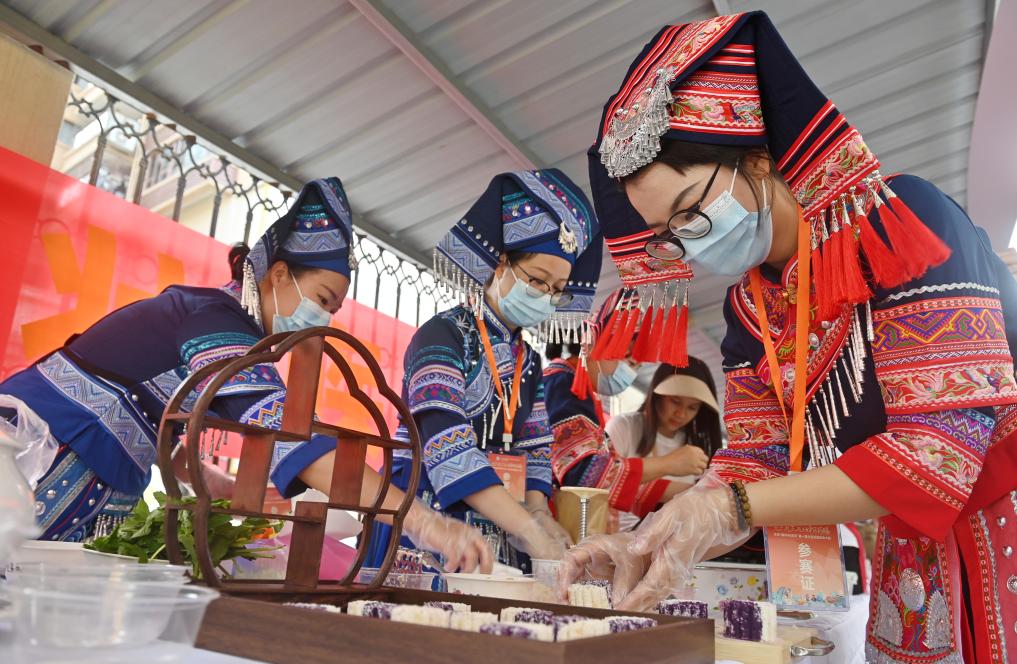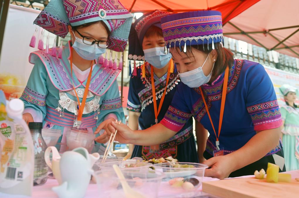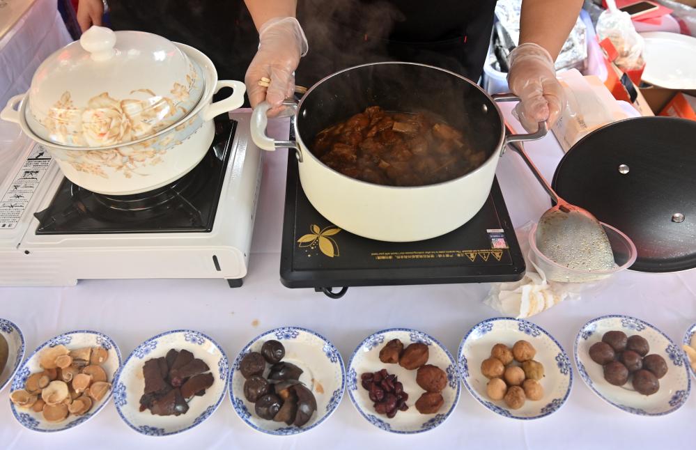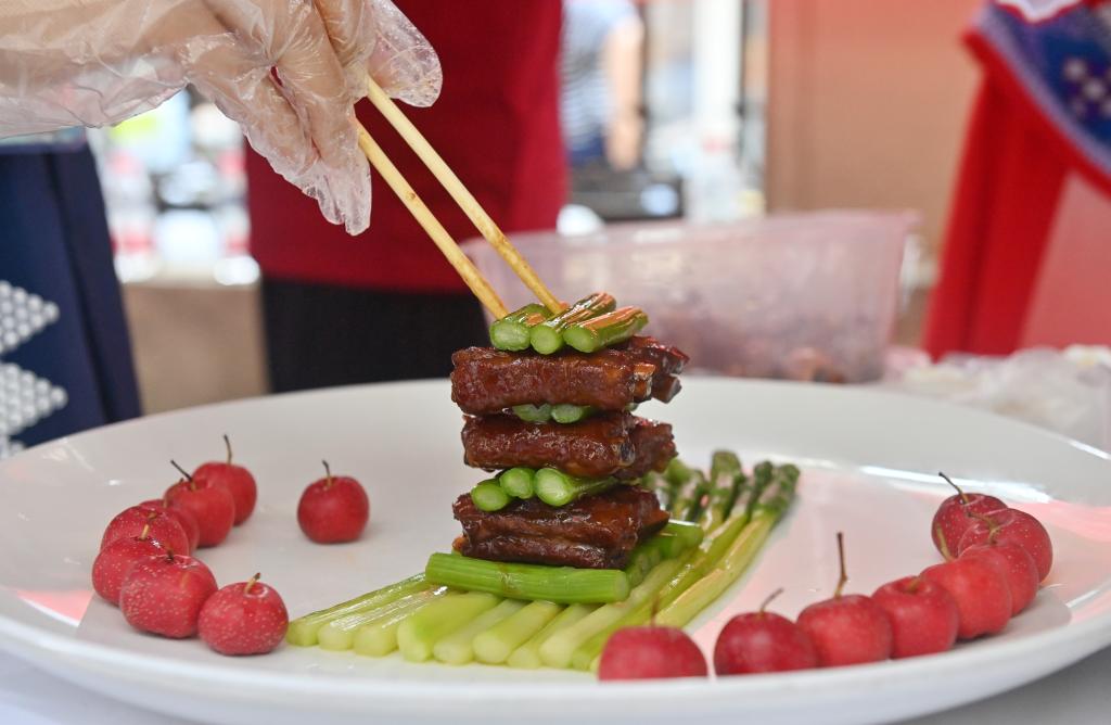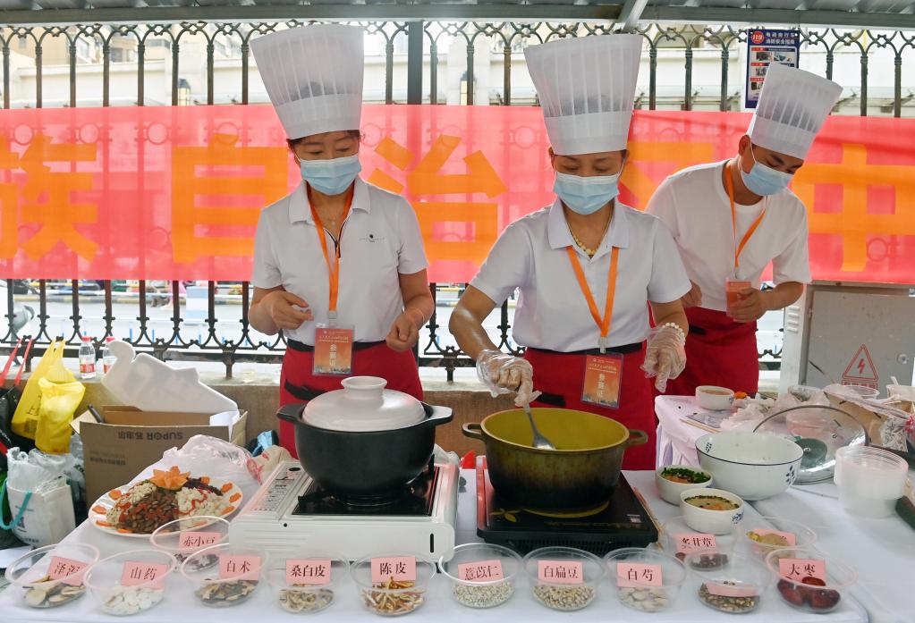 4月24日,在南宁市广西骨伤医院长虹社区卫生服务中心,参赛人员在展示中医药膳美食。