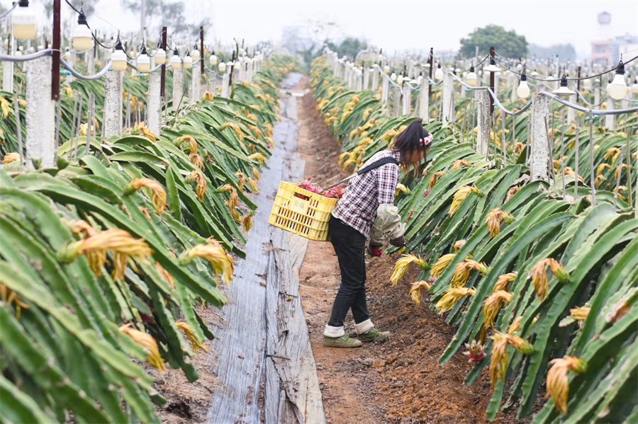 位于隆安县丁当镇的广西金福农业有限公司是隆安县火龙果种植龙头企业。在火龙果基地内,腿脚不便的卢春弟一边剪枝,一边向大家介绍:“2016年,我有了工作还脱贫了。今年,我想带动更多和我一样的村民来这里务工。”