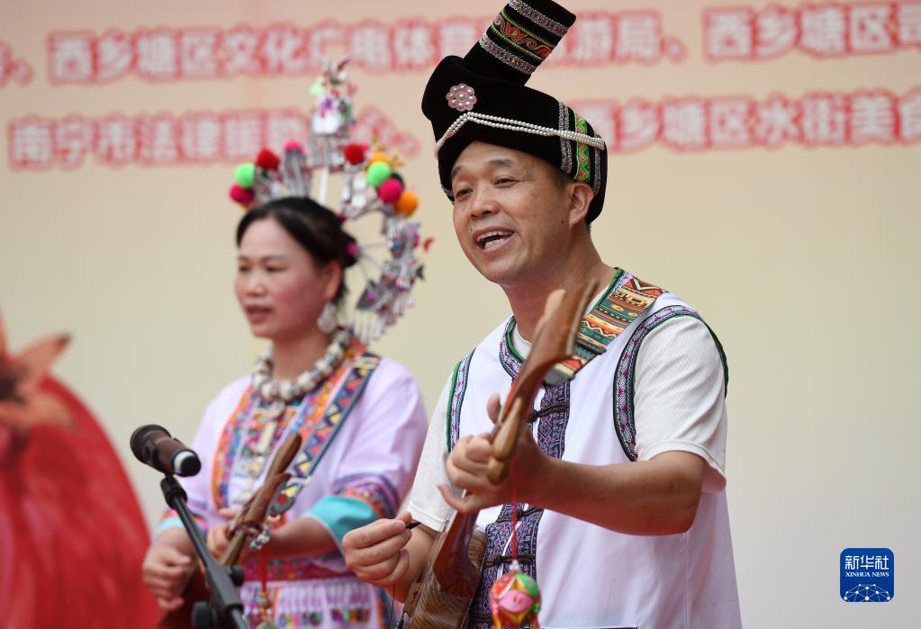 9月28日,在广西南宁市西乡塘区,演员在表演文艺节目。