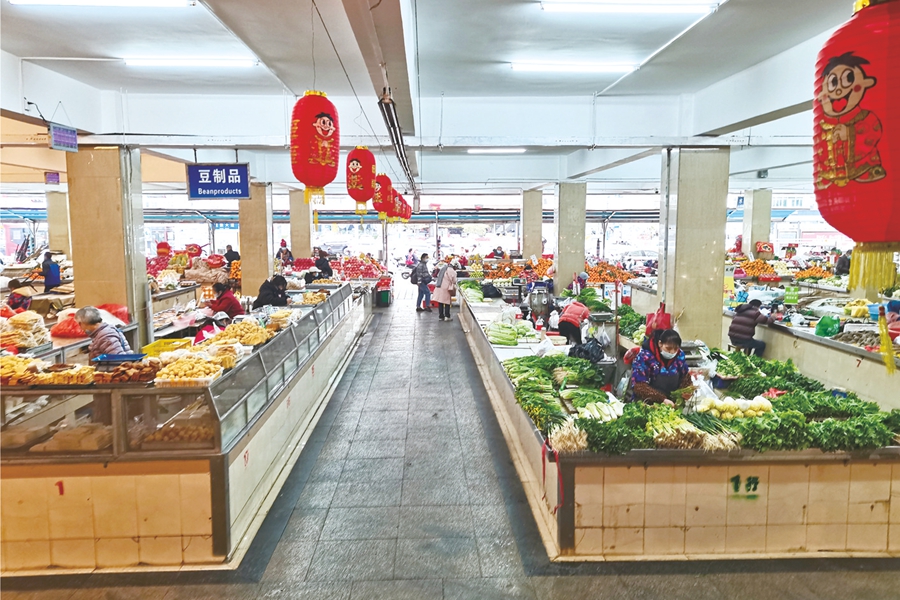 当日上午11时许,记者来到麻村市场,看到市场内已经挂起红灯笼,春节氛围浓厚,前来买菜的市民络绎不绝。市场内瓜果蔬菜、肉类、水产等“菜篮子”产品供应充足,价格整体处于较为平稳的状态。